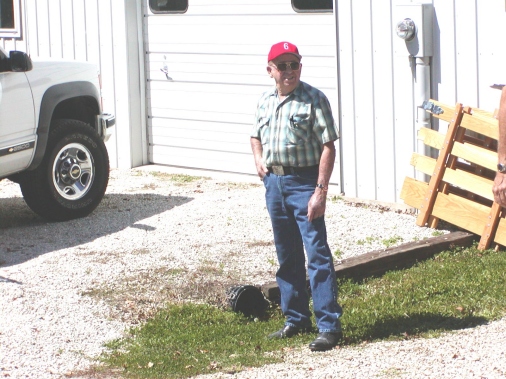Winged Warriors/NBOA members had a special invitation on Friday (a day prior to the opening of the Monster Mopar Weekend) to Rich and Judy Bolzenius's home in Union, Missouri for a reunion of retired workers from the St Louis Assembly plant. The special guests at this gathering were Cotton and Dot Owens, and their friend Dean Yeargin, who drove them out from Spartanburg, SC to spend the weekend with us. Cotton had been busy during the previous couple months building a replica of his 1964 Dodge racecar that David Pearson drove. Dean helped with the restoration and their hard work culminated in them hauling the car (finished except for firing up the engine) to the event. The Dodge was pushed out of the trailer and spent the day on display inside of Rich's shop, where we congregated to talk, take pictures and eat a wonderful feast of fresh grilled brats, burgers and fixin's. (You can read a transcript of the speech that Cotton gave to our group elsewhere on this website).