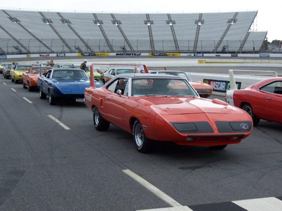 Friday morning appeared clear, warm and humid and an early departure was required to make the run ot Martinsville Speedway. By this time, the caravan included 15 winged cars, the '69 RoadRunner convertible, the Highway Patrol and a pair of '74 Chargers. Chuck Royster, possibly out newest member, ran ahead and shot a video of the group heading down U.S. 29 en-route to Martinsville.