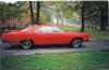 We no sooner had gone 15 miles from the border when, out of the corner of my eye two miles off to the right, I saw what appeared to be a 1970 RoadRunner coming towards us. At a four-way stop 1,300 miles from home, having just bought what I thought at the time was my dream car, appears this gorgeous Hemi Orange, white painted top, bucket seat RoadRunner. We headed on into town. Needless to say, he followed us and stopped in town and we talked about the cars. He says, "Hell, I would have sold you this one for that price!" I was feeling about two inches tall at this point. I took a picture of his car, got his name and number and said, "You never know, I might call you and come back and get it."