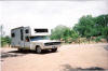 Once the Saturday night racing had ended [at Bandimere Speedway], I drove up to the track's pit area and got ready to sleep. All afternoon I'd taken advantage of the camper's many amenities...the dual sofas around a table, a refrigerator and a sink. Had I wanted to cook, the Housecar has three gas burners over a small oven, but now it was time to sleep. In a cupboard I found sheets, pillows and a comforter to cover a mattress above the bucket seats in a sleeping compartment. I slept surprisingly well, even at 6' 2" I could stretch out completely.