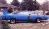 In April, 2005, I received an e-mail from Paul Hickman of Cleveland, Tennessee who added this interesting anecdote to the story: "In the summer of 1986, the car was in for service at Kile Chrysler Dodge in Cleveland, TN. This is about 30 miles north of Chattanooga where the WGOW Radio Station is located. I was 12 years old and remember this vividly. This was what made me want a winged car. The car was solid blue (Petty Blue) and had a black vinyl interior at this time (possibly a bench seat). It seems like it was a 4-speed with a Hurst T-bar shifter nob. The speaker was still attached to the trunk lid (black in color). The exhaust was very, very loud. David Kile, who was the service writer, took me for a ride in the car since it was near closing time and the cars had to be put inside. He told me the car belonged to 'some radio guy named Rome Benedict'. I am quite sure it had the same wheels as pictured in the photo on the website [above]. I later worked at the dealership in the mid-nineties while attending college. The owners are personal friends of my family. This is why I got a ride in the car. This is a great memory from growing up. I have ridden in another Superbird since then. Wonderful cars!"
