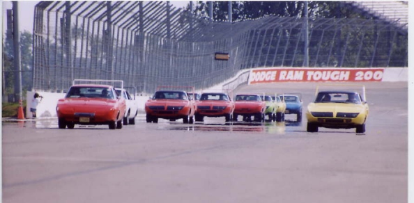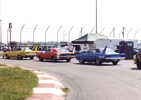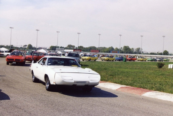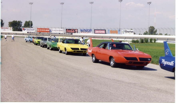 About 3 o'clock in the afternoon, our members lined their cars up on pit road and prepared to go out on the racetrack. The pace car took us out in groups of 20 and we did several fast laps around the circle track. Cotton road around the track with Rich Bolzenius in his Lemontwist yellow 440+6 Superbird. This is always a highlight for the members, and ONLY WW/NBOA members get to go out on the track and do the laps. After the laps, most of the members left Gateway and headed back to the hotel to get cleaned up before supper--it had been a very hot and humid day at the track.