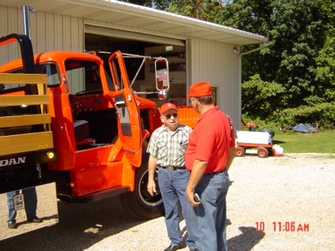Mike Eberhardt arrived early in the day with the Chrysler Turbine car from the St Louis Museum of Transportation. We are lucky to have Mike bring the Turbine car out each year and answer questions about it. It is always a big hit with the members, as it's still a very futurist car and never fails to please the crowd, especially when you hear it start up. As an additional treat, later that morning, Rich's neighbor showed up with a turbine-powered pull tractor on a trailer! After much begging, the owner finally started it up for us to hear. He did warn us, though, that he would only let it run at an idle because it was capable of launching off the trailer, breaking large chains and all, and taking off through the woods!