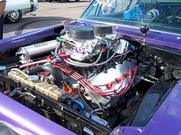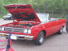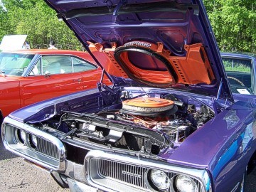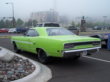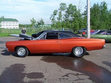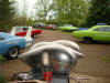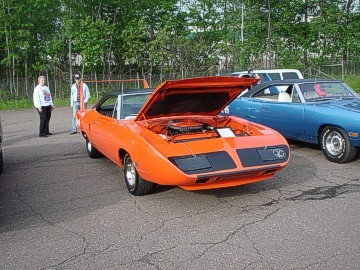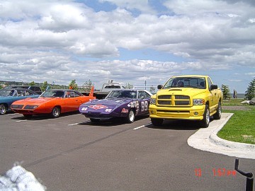 Upon arriving at Duluth Dodge, we were led to the back of the car lot where we were allowed to park our Mopars together in a long line for display. With our presence, the show 'n shine was Mopar heavy with only a few non-Mopar cars showing up. Rod Marinucci unloaded his 1968 Barracuda drag car from a nice enclosed trailer. Rod has raced this same Barracuda since 1974. He set up a table with several interesting race items, a two-piece intake manifold that he designed, rods, pushrods, a 4-speed transmission, Hemi pistons and valves. He used all of these as props for the very interesting performance seminar he presented to us. Rod also told us about his racing experiences over the years with his Mopar cars. After the seminar, a fellow Mopar lover at the show wanted to line up three generations of Chargers for a photo session, so we accommodated him with a 1966 Charger, a 1969 Charger, 1969 Daytona and a 1972 Charger. We returned to the Canal Park Lodge in early evening and sat around in the lobby and talked until the wee hours.