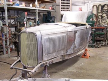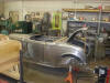 One of the projects he showed us was a 1932 Ford Roadster. He had many of the metal panels already installed and try as we might, we were unable to see any welds on the inside or outside of the panel, even in bare metal! Cass is very meticulous about his work and it's amazing to see the quality of the parts he builds. Before he ships the bodies out, he coats them with oil or cheap clear paint that will come off easily with paint thinner. Two of the car bodies we saw will be shipped ready to bolt onto the stock chassis when they arrive in Russia. It's amazing that Cass can build these bodies as he had never seen the chassis; all he has to work from are the measurements, drawings and pictures.