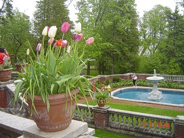 Wednesday morning, it was again foggy, misty and cold as we departed from the Lodge for the drive up North Shore to Glensheen Mansion. Completed in 1908, this huge mansion was home to Clara and Chester Congdon and their seven children, all of whom are now deceased. Almost all of the original furniture, fixtures and furnishings are still in place. The Congdons were very affluent and the mansion has many state-of-the-art facilities, including the garden with fountain, a beautiful stables for their horses and exceptional living quarters for their servants. We were welcomed to take photos outside the mansion, however, once again cameras were not allowed inside. Our tour guide showed us through the many beautiful rooms, including several exquisitely decorated dining rooms that were used for different guests, sitting rooms, library, the Congdon's separate bedrooms and a room they also shared on occasion, the children's bedrooms, guests' bedrooms, the maids' rooms, the massive kitchen and pantry, etc. Although the guides don't volunteer the information, we asked about the notorious murder that took place in the mansion. We were shown the room where this event took place and heard the story of what happened...or maybe it was just the story the tour guides are instructed to tell? After touring the home, we walked through the horse stables where the walls and floors are white tile and there was running water in a stainless steel sink for each horse. From there we wandered through the gardens where the flowers were struggling to grow in the spring cold. We paused at the pool and fountain, where you could look up for a full view of the beautiful mansion. Back at the parking lot, we were all relieved to get inside our cars and turn the heaters on!