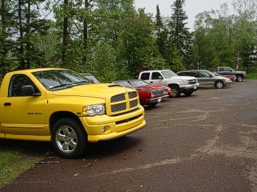 After returning to the Lodge, that evening we held our raffle and club business meeting. The raffle was huge, thanks to so many member's donations, and seemed to go on for hours. After the raffle, some members went back to their rooms to pack up for the trip home, while many of us went out to the patio to enjoy one last evening together by the lake. During the course of the meet we had discount gas coupons from the Little Store Gas Stations. Mike Busch, who was not even a club member at the time, arranged for us to get the discount coupons. We all used them frequently and they really helped with gas being over $3 a gallon at that time. A very big THANKS to Mike for getting us the gas coupons! A very big THANKS to: our meet hosts Janet and Curt Lawson and Gary Homstad who did all the footwork and arranged for this awesome event to take place. Also THANKS to all of the following people how donated and helped with the raffle: Stan McGuire, Pat Clemons Dodge, Teresa and Steve Netkow, Dale Weigert, Mike Janikowski, Greg Nelsen, Mancini Racing, Super Car Collectibles, Mopar Collector's Guide, Hagerty Insurance, O'Reilly's Auto Parts, Midwest Transmission Center, Performance Car Graphics, Totally Auto, Hardens Muscle Car World, Eaton's, Grandma's Restaurant, Dairy Queen, Duluth Dodge, Cloquet Dodge, Roy's Grand Dodge, and Midwest Mopars who donated $200 to help with expenses.