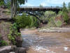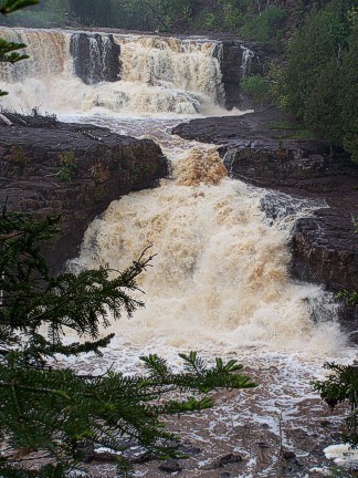 We left the lighthouse in the late morning and drove in the fog to Gooseberry Falls for our picnic. We had a nice rock shelter house complete with a big fireplace that was much needed on this day. It was 40 degrees and windy and damp that day so the first order of business was a group of the members built a fire in the fireplace while others put out a delicious meal of baked beans, salads, pulled pork. A few of us had to brave the cold to stoke up the grills and cook burgers and dogs outside. We had to guard our grills diligently as the huge seagulls sat on the roof waiting to steal any meat left unattended. After stuffing ourselves with great food, everyone enjoyed a big piece of delicious cake adorned with Mopars and the club logo. While a few members stayed at the shelter house to clean up the mess, the rest of us went on a hike to see the falls. The advertising brochures claimed it was a 15 minute hike to the falls. In reality, it was a lot further to actually get to the top of the falls and see this grand beauty. We hiked for the better part of an hour and some of the hiking path was pretty crude due to lots of recent rain. But it was worth the effort as we reached the top of the falls and took photos of our members. By the time we got to the top of the falls, the weather had improved greatly and it was now a pleasant sunny day. We walked across the bridge at the top of the falls and hiked back to the shelter house on the other side, seeing many pretty flowers along the way. Back at the shelter house we gathered up our group and headed for Duluth Dodge.