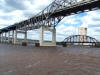 After our boat ride, some of us decided to walk across the lift bridge out onto the island where all the residents were holding a huge garage sale. When we were about halfway across the bridge, a bell sounded and an electronic voice boomed that the bridge would be raising and anyone that was on it had less than a minute to get off! It's a LONG distance across the bridge and you have to run hard all the way to make it in that amount of time, and no, they don't wait for you! It is very, very windy on the bridge and hard to stand up at times. This bridge is the only way that the residents on the island have to get to the mainland and the employers in the city allow extra time if their employees are late for work. There was a very long line of cars waiting to get across the lift bridge when we got to the other side after the bridge started raising. It was at least a 10-15 minute wait for the bridge to be lowered back down. Obviously the residents are used to this, as they were sitting in their cars reading books, or standing outside talking to each other; no one seemed to be upset about the long wait. It's just a part of their lives. You can see in the sequence of photos below how the lift bridge works. Incidentally, the lift bridge is illuminated at night and was quite a beautiful sight from our hotel.