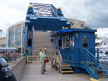 Friday morning, some of the members who had arrived later in the week took off for Cirrus Aircraft to take in the tour they had missed. We originally had a train ride to Two Harbors planned for this day, but since it would have taken all day and the time we would have had to spend at Two Harbors was very minimal so we decided to cancel that event. In its place, we had a reserved spot on one of the Vista Fleet harbor tour boats. We discovered at the last minute that the tour boat company had sold our seats to a group of polka dancers because they had more people in their group than we did and the company could make more money off of them! Some of our members decided to go on a later boat ride and had a great time touring the Duluth harbor. We saw a large freighter being loaded with coal, the huge docks at all of the lakeside industries where iron ore, scrap metal, grain, and fuel were loaded onto freighter ships, an off shore crane, even a scrap yard of steel. On the return trip to the dock, we passed under the lift bridge between Duluth Harbor and Lake Michigan into the lake and from there we could see the Canal Park Lodge where our cars sat and the boardwalk behind the hotel.