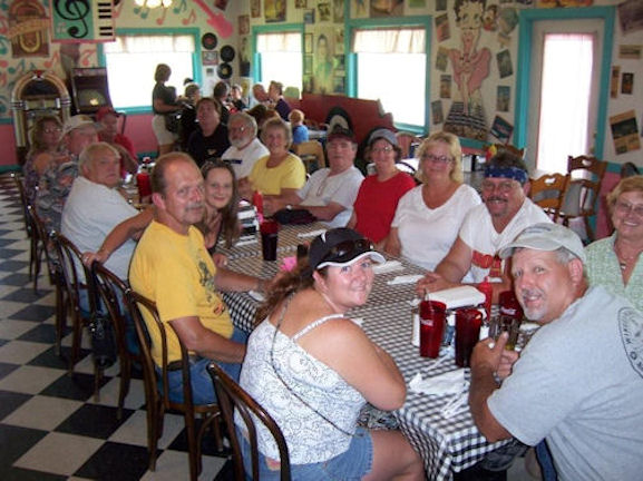 Several members also visited the Natural Bridge caverns, and we were joined at the Natural Bridge by Tim Hunter and his family, in a Dodge 330 ex-Michigan State police car, complete with lights. The group then returned to Lynchburg, having dinner at Doc's Diner just down the street from the Wingate. Doc's also gave the club a discount for the meet week. The annual club raffle was then held, which seemed to be enjoyed by all, especially Phillip Handley.