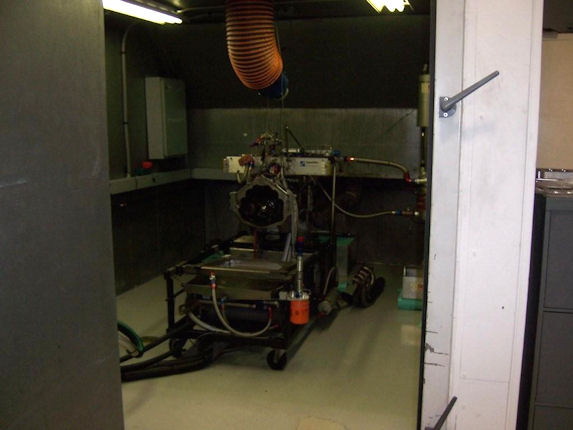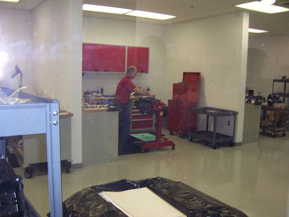 After deciding that even on our best day we were not threat to Matt Kenseth's "Killer Bees", we departed the track for lunch at Buddy Arrington's restaurant. As were were enjoying lunch, Buddy arrived and proved his mettle by having a meal from his own buffet. After spending time talking about the "old days" and the "urban legend" about all the stuff supposedly buried by Petty Enterprises on orders from Chrysler, we made a group assault on a gas station (below) and headed to Arrington Engines following Buddy.