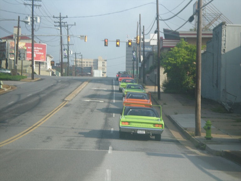 Friday morning appeared clear, warm and humid and an early departure was required to make the run ot Martinsville Speedway. By this time, the caravan included 15 winged cars, the '69 RoadRunner convertible, the Highway Patrol and a pair of '74 Chargers. Chuck Royster, possibly out newest member, ran ahead and shot a video of the group heading down U.S. 29 en-route to Martinsville.
