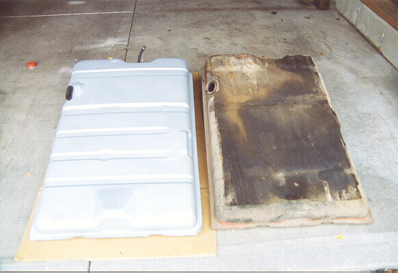 One more thing you'll want to do while the tank is still out of the car: clean the trunk floor under the car and apply a rust-extender product to the surface and repaint it. This will protect the floor from further rusting after your restored tank is re-installed.