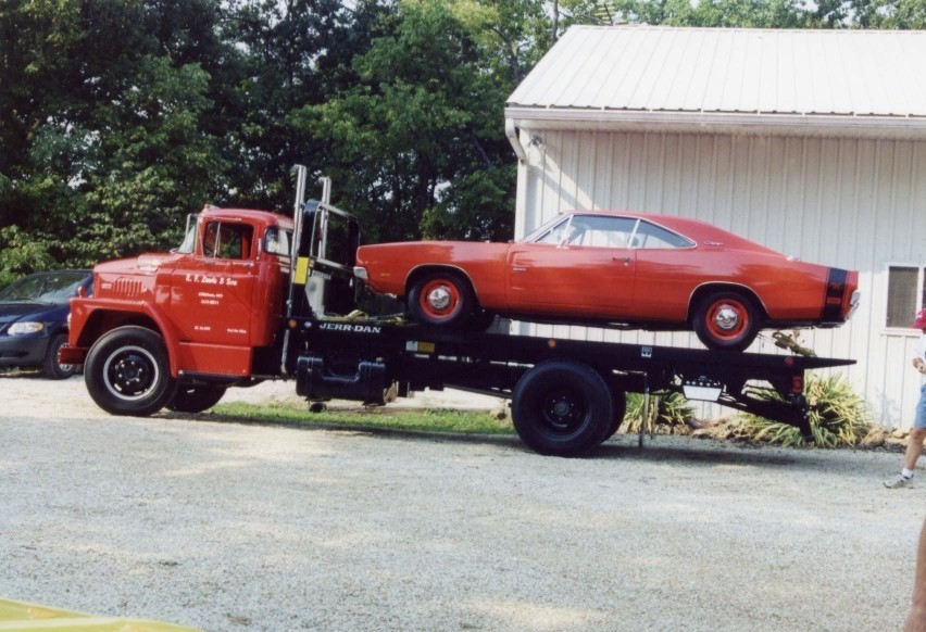 Once the truck's level of restoration became apparent, Norm Brandes (the same Norm that provided the block and built the Hemi engine for the R/T), kept suggesting that the truck would make a great car hauler. I had downplayed that suggestion since most car hauler beds with the upturned/fixed siderails do not lend themselves well for hauling construction materials. It wasn't until I checked into what Jerr-Dan could custom-build that I finally decided that a dual-purpose vehicle was the way to go. My rationalization was that by having the truck all refurbished, it would be dependable and could do work during the week, but perhaps haul a car to a show on the weekends. The combination roll-back bed, with a wood floor and oak stake-bed siderails allows both work and play options.
