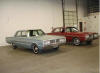Meanwhile, I was out back (inside the building) where we parked our car next to the other '66. Mike and Mark walked around the two cars noting the differences. The first thing they noticed was that our '66 sat higher in the rear. I told them that was due to the air shocks. They wanted me to lower the car so I let out some air, dropping the car a couple inches and they were happy. The other differences were: our '66 is a 440 model and the other was a Deluxe, so the side chrome was different as well as the horn ring. Also, our car had a radio and the other car was a radio delete. All in all, they were happy with the car and the two cars will look the same by the time they are used in the movie.