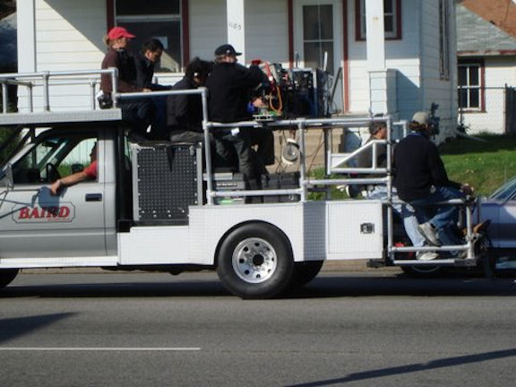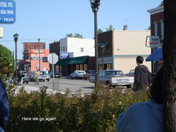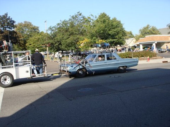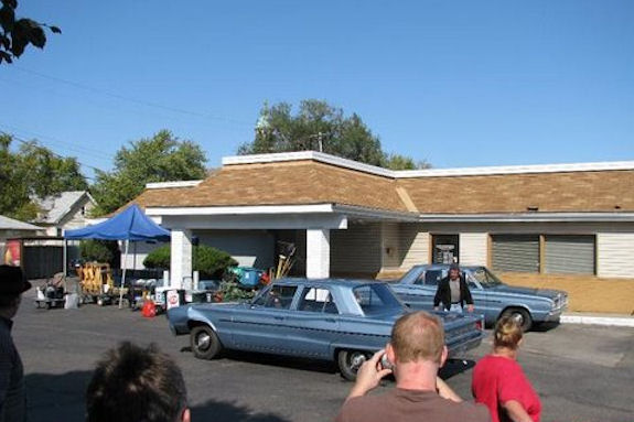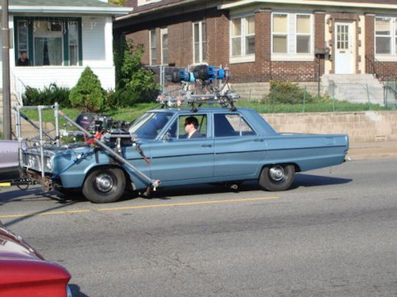 We were back the following day but did not stay to the end as they were going to shoot until 8:00 pm. We left the car there and were told they would be done the following Tuesday. We went to pick up the car on Tuesday but they had to shoot a scene over so we had to leave it one more day. The red Coronet is back home now but the four-door, from what we can tell, will play a starring role in the movie as most of the scene filmed while we were there revolved around that car and the person who we think is one of the lead characters.
