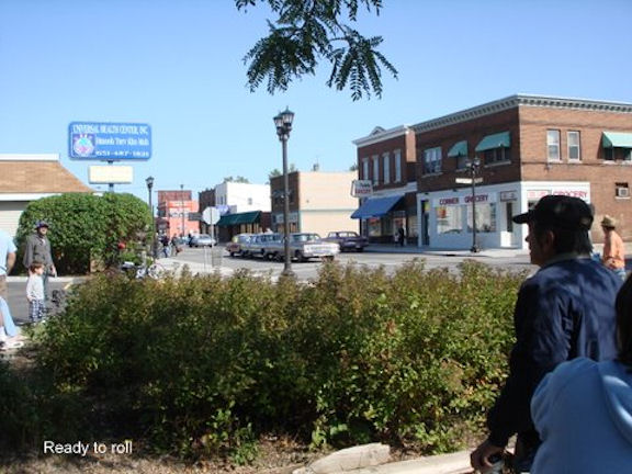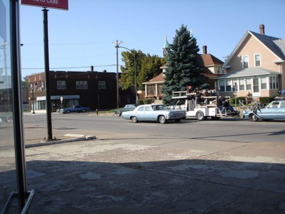 Most of the filming for the movie was done in Bloomington, Minnesota because the producers found a neighborhood that had the "suburban tract housing" look, with a corn field and circa 1965 ranch houses with young trees. A storm had come through several years back and destroyed all the big old trees. The movie people did add awnings, fake garage doors, brick trim, etc, to make the houses look exactly like what they wanted. It's amazing the very tiniest details that they go to the trouble to change just for a few minutes on film. The cars were changed to fit the image the producers wanted also. Some of them were repainted a different color, a lot of chrome was removed and stick-on chrome added so they'd look alike, the seats were partially reupholstered or draped with fabric (the part you see on camera).