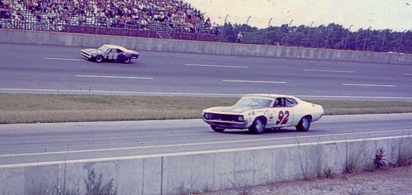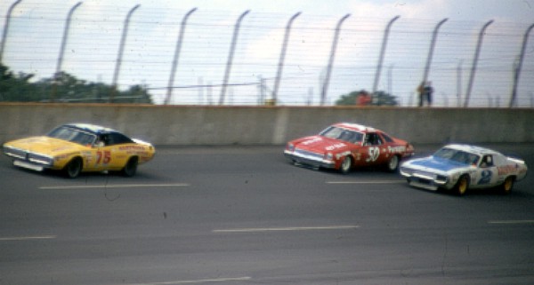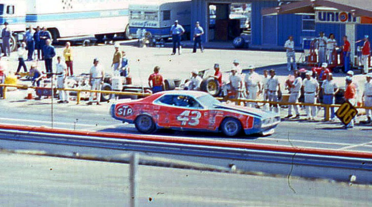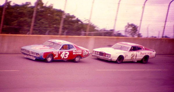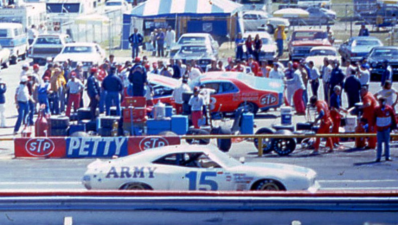 Lenny Pond in the pits; #02 Bobby Allison and Richard Petty; #32 Richard Brooks.