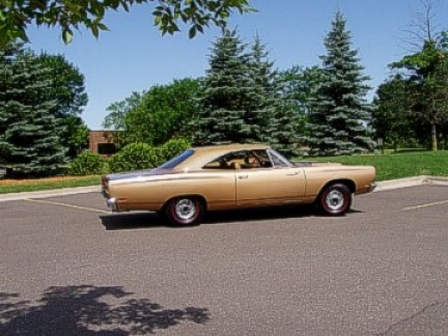 Never had I seen a Honey Bronze colored RoadRunner, and with the redlines and full hubcaps it was butt ugly. The very next day, he came home with the RoadRunner and it was sporting 7" reversed Cragar SS's with Goodyear white-lettered Polyglas tires. It looked like a completely different car.