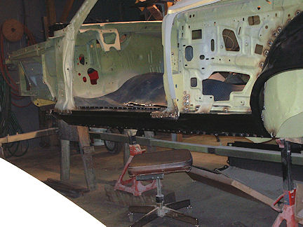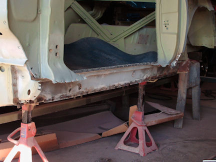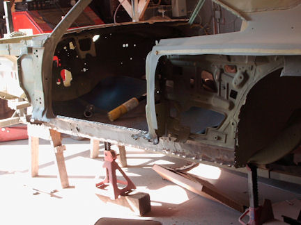 Since the car had probably been junked at one time in its life or partially parted out, mice had made nests in a number of places. This, of course, is not good especially when they nest in metal areas as their urine is very corrosive to metal. One of the metal channels under the Dutchman panel had to be replaced as it had rusted through on the bottom side due to mice. The rocker panels were replaced due to damage by mice also. Even one of the front frames was found to have weak spot that needed attention, and yes, it was due to a mouse nest.