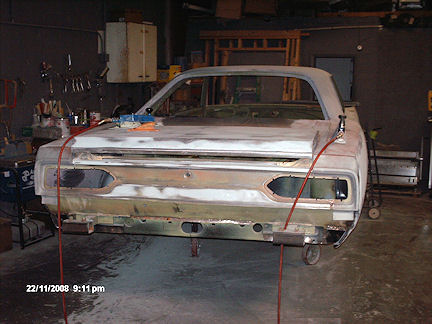 So on a cold January 16th day in 2009, the GTX left for Carroll. Several unforeseen things slowed up the restoration. The first was getting the new AMD sheet metal. The four to six weeks to get the new quarter panel ended up to be six months. However, the wait was worth it as the quality of this new sheet metal is excellent.