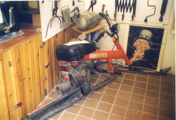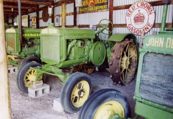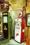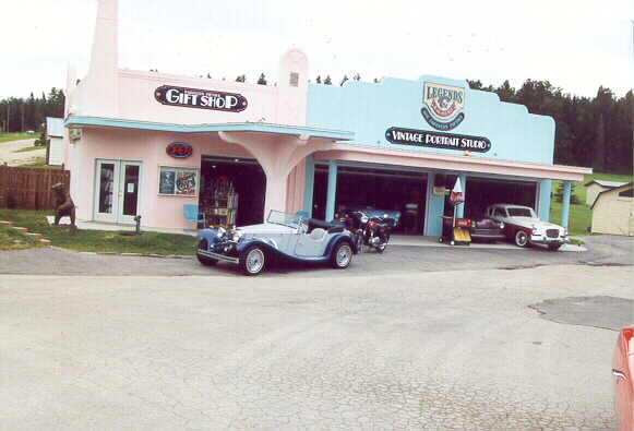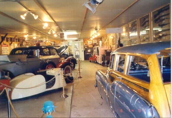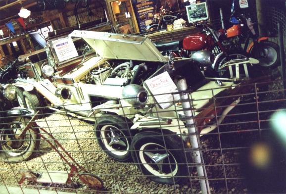A group of us headed out from the Midwest on Monday June 14th and spent the night in Mitchell, SD. Our hotel clerk told us a group of winged cars heading west had stayed there the night before. Many locals who had seen the previous Mopars come through the night before came back to the hotel that night to visit with us and look at our cars. Tuesday morning, our group headed for Murdo where we spent several hours touring the Pioneer Auto Museum, which has a vast collection of every kind of automobile, tractor, motorcycle and memorabilia imaginable. The oldest car there was a 1902 Jewel Roadster. There were cars from the 1910s through the 1960s including several celebrity cars, one of Richard Petty's first crude old race cars, a collection of musclecars including a Superbird, Challenger and a very rare GTO Judge convertible. One very unique item was an old Chrysler sled as seen in the photos below. It was called the "Sno Rabbit" and was a cross between a moped and a snowmobile. Someone had hand-lettered a sign and laid it on the seat that said: "Chrysler Made. Unsafe at ANY Speed!" Everyone who saw it tended to agree! Another interesting car was the 1961 Dodge Hemi-powered Ocktocar. There was even a collection of rocks, gems and fossils and an antique village with old buildings filled with their original furnishings, such as a dentist office (looked more like a torture chamber!), post office/telegraph office, pharmacy, leather shop, etc.