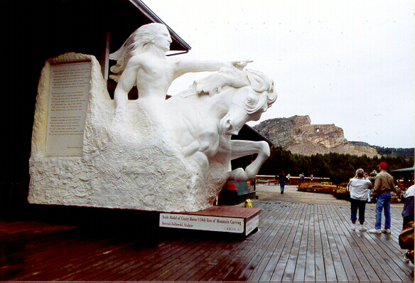 Thursday morning dawned cold, windy and rainy. We all met at the Civic Center and our escort led us out of town for a leisurely cruise to Crazy Horse Monument near Custer. Luckily, by the time we arrived at our special parking area, the rain had subsided and we were able to get some photos taken. Crazy Horse is the world's largest sculpture, a family project started in 1948 by sculptor Korczak Ziolkowski and continued by his widow Ruth and several of their grown children. In 1998, the completed nine-story-tall face of the Indian Chief Crazy Horse, blasted and carved into the side of the mountain, was unveiled to the public. The family is currently working on the 22-story-tall horse's head. It's an awesome sight to see but unfortunately, will probably not be finished in our lifetime. There was a viewing deck below the monument and a visitor's center with theaters showing films of the progress over the years and even a flea market with Lakota Sioux Indians hand-making their various crafts and selling them. Photos below are from our trip to Crazy Horse Monument. The last two photos in the top row show the actual monument being carved into the mountain and the Crazy Horse model that is on display on the observation deck. You can see the real thing just beyond the model.