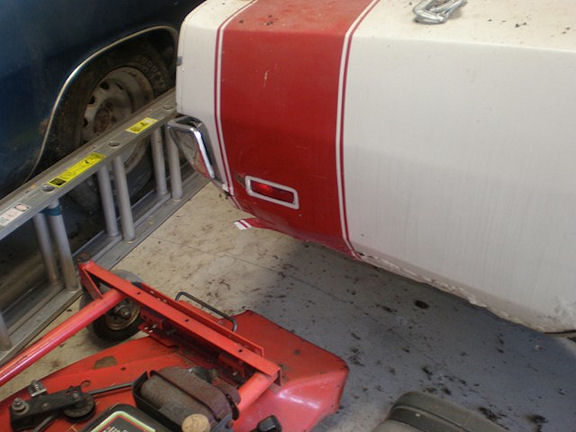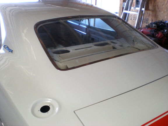 The 500 looked a little better than the one I had and was pretty much intact, but needed most of the rear half of the sheet metal replaced and the rear window plug needed work, from sitting outside. The car may have been repainted because the tail stripe was painted on, instead of being a decal. The car ran and was drivable, but I did not trust it to drive it home. So we worked out a deal and it came home on a trailer the next week in January 1987.
