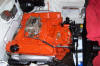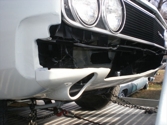 The car is white with a red interior and red stripe, power steering, power disc brakes, a 440 and console automatic, and a 4:10 Dana. I drove the car very little for about three years before parking it. I started taking it apart in 2007, with the intention of getting the engine bay stripped and painted, the drive train installed and then going to a body shop for major rust repair.